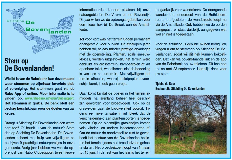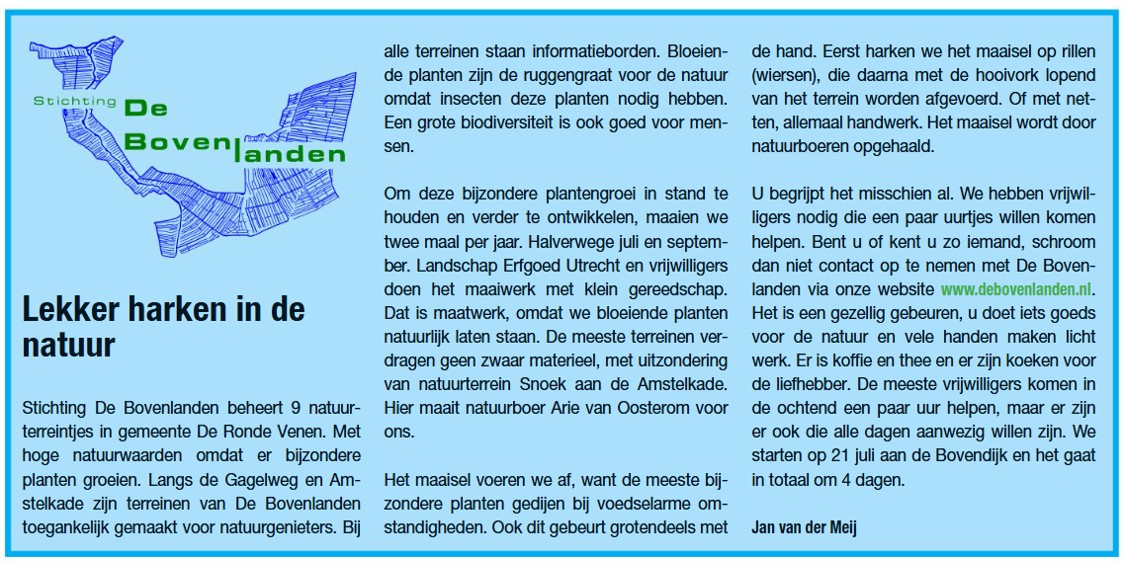 Column Column 2025-11 Mysterie gele paddestoel Column 2025-10 Planteninventarisaties Column 2025-09 Stem op De Bovenlanden Column 2025-07 40 jarig lustrum De Bovenlanden Column 2025-06 Lekker harken in de natuur Column 2025-05 Knotten in het Veenwater Column 2025-04 Het Veenwater Column 2025-03 Waarom.png Column 2025-02 Knotten in het Veenwater Column 2025-01 Natuurterrein Snoek Column 2024-12 Sloten Column 2024-11 Noemenswaardig Column 2024-10 Natuurterrein Bovendijk Column 2024-09 Argusvlinder Column 2024 08 Donateursavond Snoek Column 2024-06 Samenwerking Zorgboerderij Amstelkade Column-2024-05-De-Bovenlanden-actief Column-2024-04-Historie-Gagel-gebied Column-2024-03-Waarnemen-Zien Column-2024-02-Natte-Winter Column-2024-01-Legakkers-Gagel Column-2023-12-Wintergasten Column-2023-11-Mossen Column-2023-10-Zieke-Essen Column-2023-09-Een-bron-van-zaad Column-2023-08-Beide-benen-in-de-natuur Column-2023-06-Maaien-goed-voor-de-natuur Column-2023-05-Natuurterrein-De-Snoek Column-2023-04-Veerkracht Column-2023-03-Legakker-gered Column 2023-02 Natuur, geld en papierwerk Column 2023-01 Korstmossen Column 2022-12 Steentje bijdragen Column 2022-11 Dieren zien Column 2022-10 Laatste Klompenboom Column 2022-09 Natuur op bestelling Column 2022-08 Bloeiende oevers kleiputten Column 2022-07-Op-excursie Column 2022-06 Natuur op zn mooist Column 2022-05 Rietmaaien Veenwater Column 2022-04 Nut en Schoonheid Veenmossen Column 2022-03 Fietsen langs onze gebiedjes Column 2022-02 Natuuronderhoud Column 2022-01 Winterklussen Column 2021-11 Onze natuur heeft dorst Column 2021-10 De herfst is begonnen Column 2021-08 Vrijwilligers in onze gebiedjes Column 2021-07 Een zeldzaamheid Column 2021 05 Natuurverbindingen gemeente Column 2021 03 Lente … Column 2021 02 Nog geen voorjaar Column 2021 01 Winterklussen
