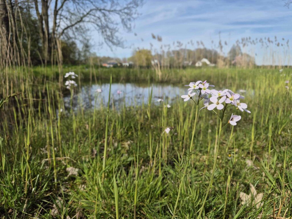 In vochtige, niet bemeste graslanden zie je nu pinksterbloemen in bloei komen. Ze staan ook rond de poel op ons terrein Voorn. De naam ‘pinksterbloem’ suggereert dat de plant met Pinksteren zou bloeien, maar de hoofdbloei is eerder. De naam verwijst er waarschijnlijk naar dat de plant bloeit op het moment dat de pinken de wei in gaan. Pinksterbloemen zijn waardplanten van het oranjetipje.