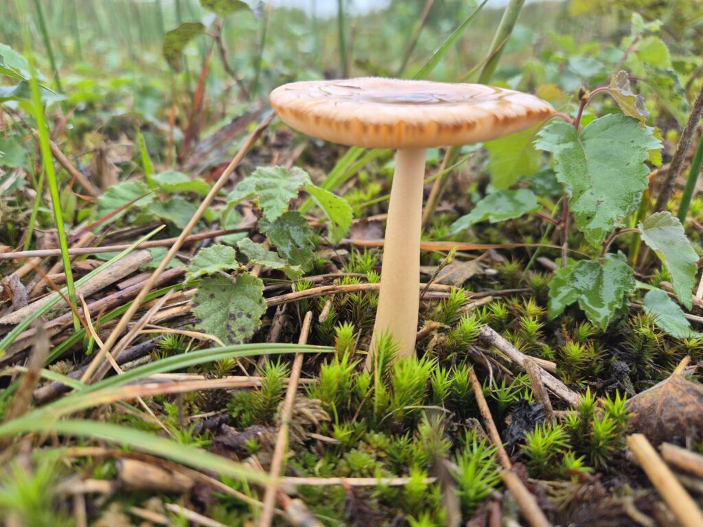 Vandaag start de astronomische herfst. Op onze terreinen zijn al paddenstoelen te vinden zoals de roodbruine slanke amaniet op ons natuurterrein aan de Bovendijk. Deze paddenstoel leeft in symbiose met berken. Hiervan staan veel zaailingen op het terrein zoals je op de foto hieronder kunt zien. Groot worden deze berken niet omdat we twee keer per jaar maaien.