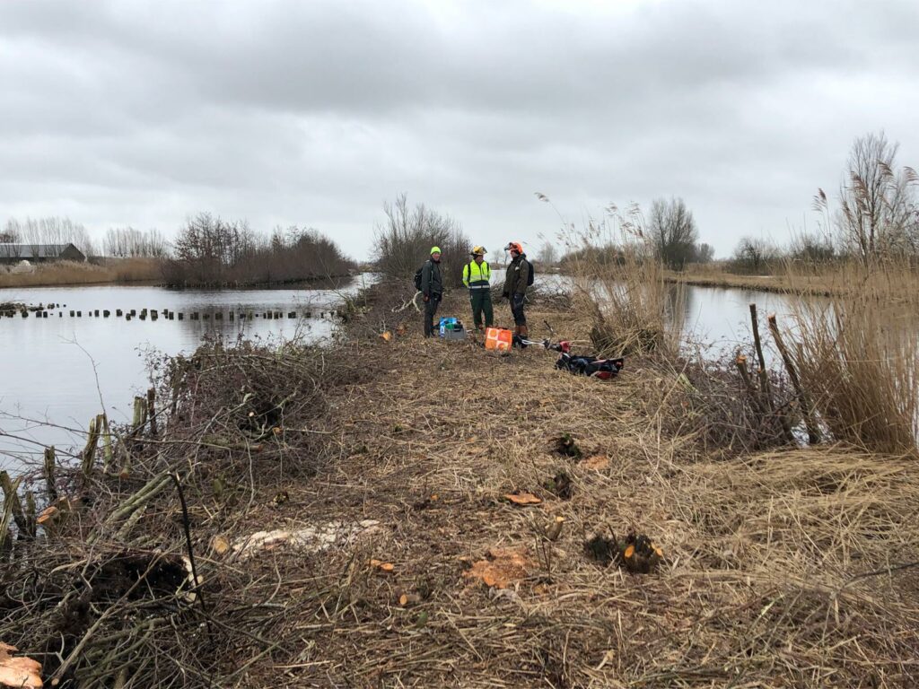 Op zaterdag 21 februari hebben we samen met knotgroep De Ronde Venen op een aantal legakkers de bomen en struiken teruggezet. Dat doen we eens in de vijf jaar om te voorkomen dat bomen omwaaien en dat het rietland volgroeit met bomen en struiken.