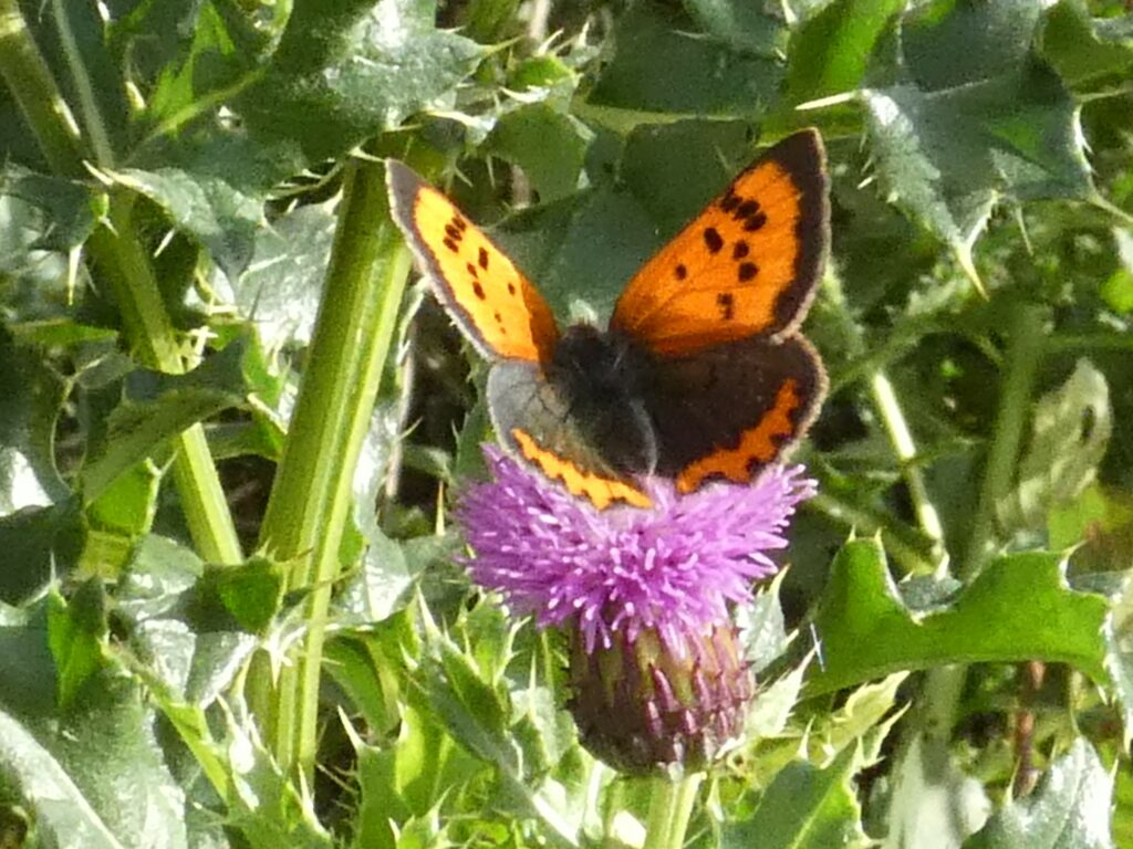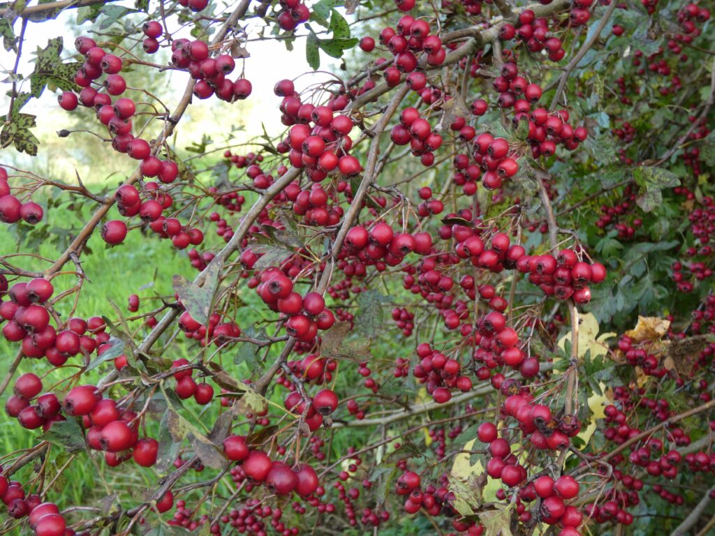 Er bloeit ook nog wat zoals de akkerdistel. De kleine vuurvlinder is daar blij mee. Verder zijn er veel bessen zoals van de meidoorn.